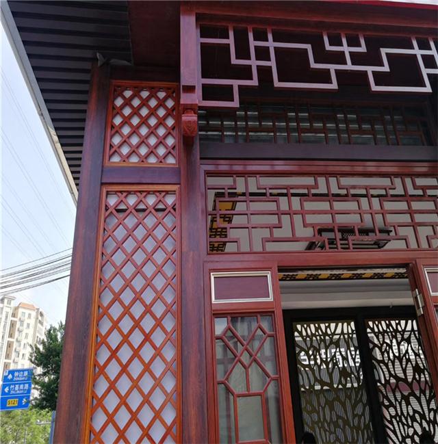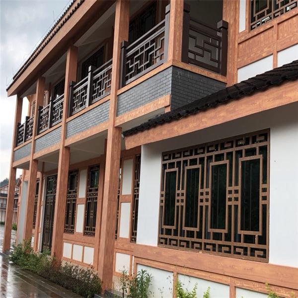 复古木纹铝窗花适用范围: 1、建筑物外墙、梁柱、阳台、雨棚。 2、机场、车站、。 3、会议厅、歌剧院。 4、体育场馆。 5、接待大堂等等高层建筑物。
